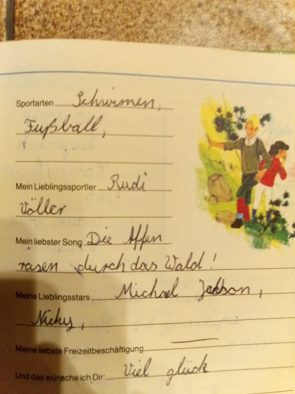 2. Meist bester Freund den ich schon seit Schulzeiten kenne musste herzlich lachen als er in meinem Buch – Das ist meine Schulklasse wo sich alle meine Schulfreunde und auch Lehrer eingetragen haben.