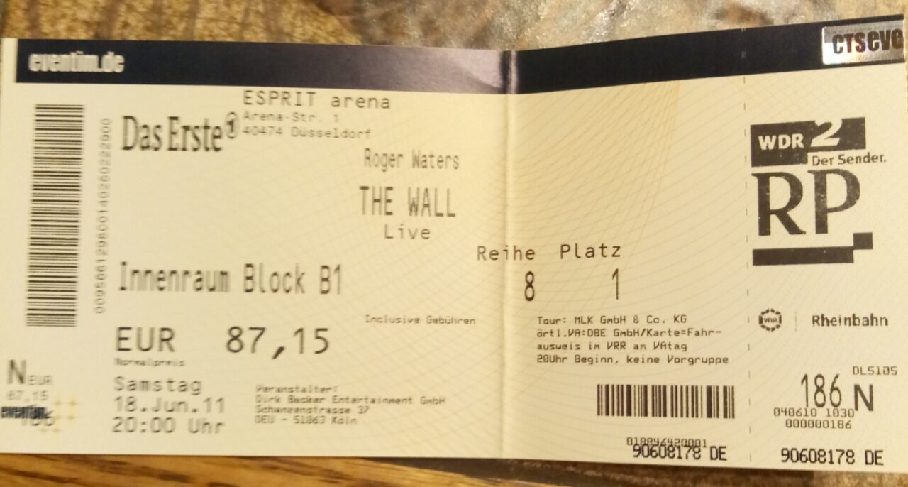 1. Im Jahr 2011 hatte ich dann doch noch die Möglichkeit Roger Waters auch mit the wall live erleben zu dürfen. War auch eine tolle Show aber natürlich nicht vergleichbar mit dem Konzert was sie damals nach dem Mauerfall in Berlin aufgeführt haben, so etwas wird es auch nie wieder geben. Das war auch ein einmaliges Zeitdokument.