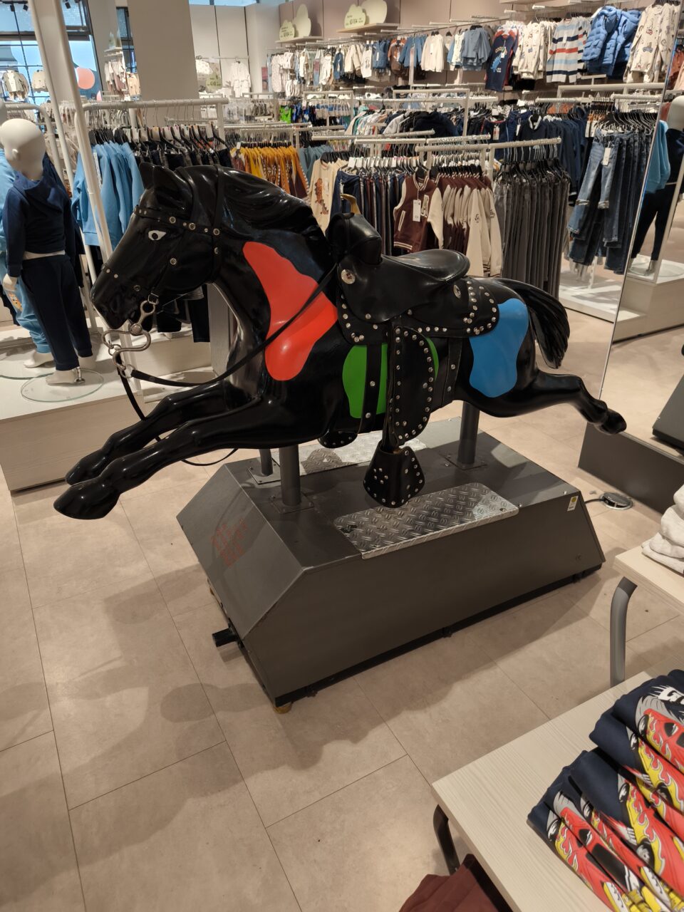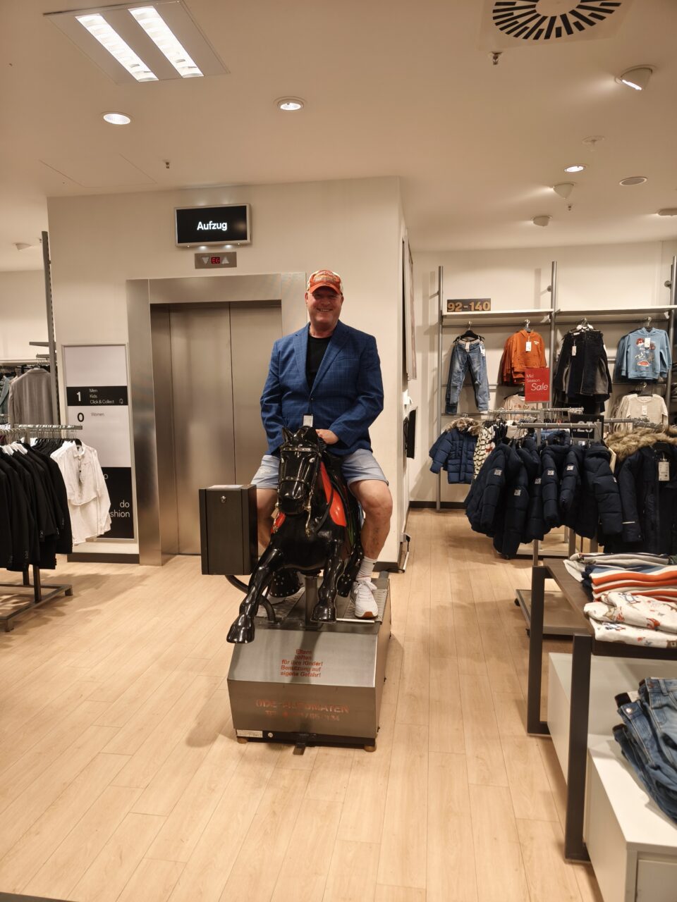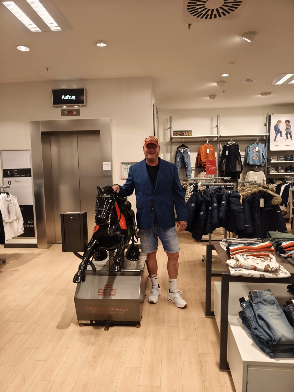 ich war am Montag den13.10.25 bei c&a Mönckebergstraße Hamburg als ich palomino sah geil reimt sich ich konnte nicht anders als eine freundliche Mitarbeiterin zu fragen ob ich mich da mal raufsetzen darf und sie ein Foto von mir machen könnte.sie willigte sofort ein und sagte Kindheitsträume ja wie kann man sowas vergessen garnicht er war ja überall am Reißverschluss