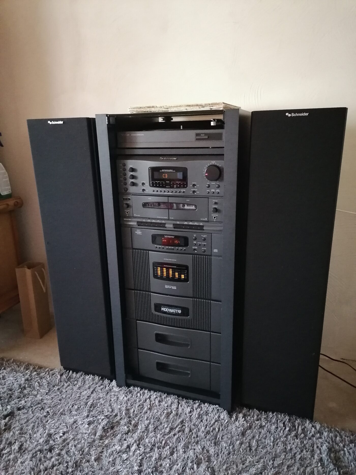 Ich habe das Schneider Power Pack SPP95 als Team 95 Ausführung in einem super gepflegten Zustand im Originalen Rack mit den dazugehörigen 3 Wege Standboxen. Sie ist 25 Jahre alt und läuft wie am ersten Tag. Tapedeck läuft ohne Probleme, 3 Fach CD-Wechsler ebenfalls. Nie ein Kundendienst gesehen. Der Plattenspieler ist extra und ebenfalls von Schneider und funktioniert einwandfrei. Sie begeistert mich heute noch und hat immer noch ein guter Klang und ich war mit der Leistung immer zufrieden. 🤩